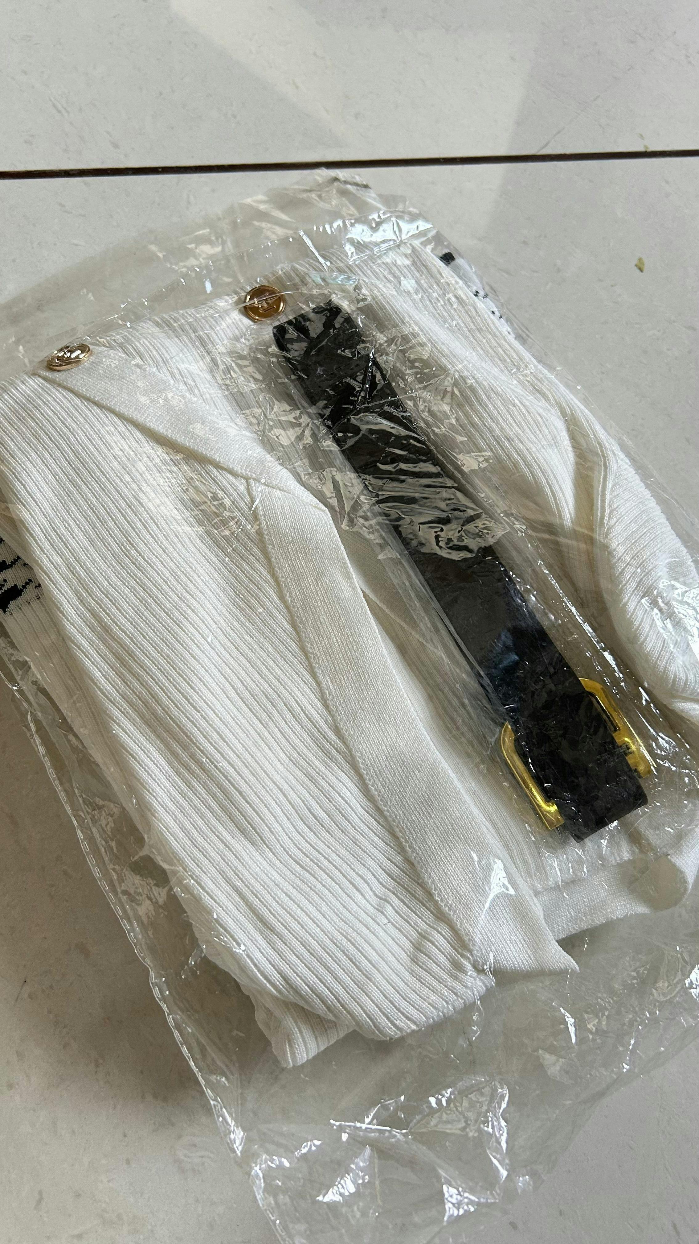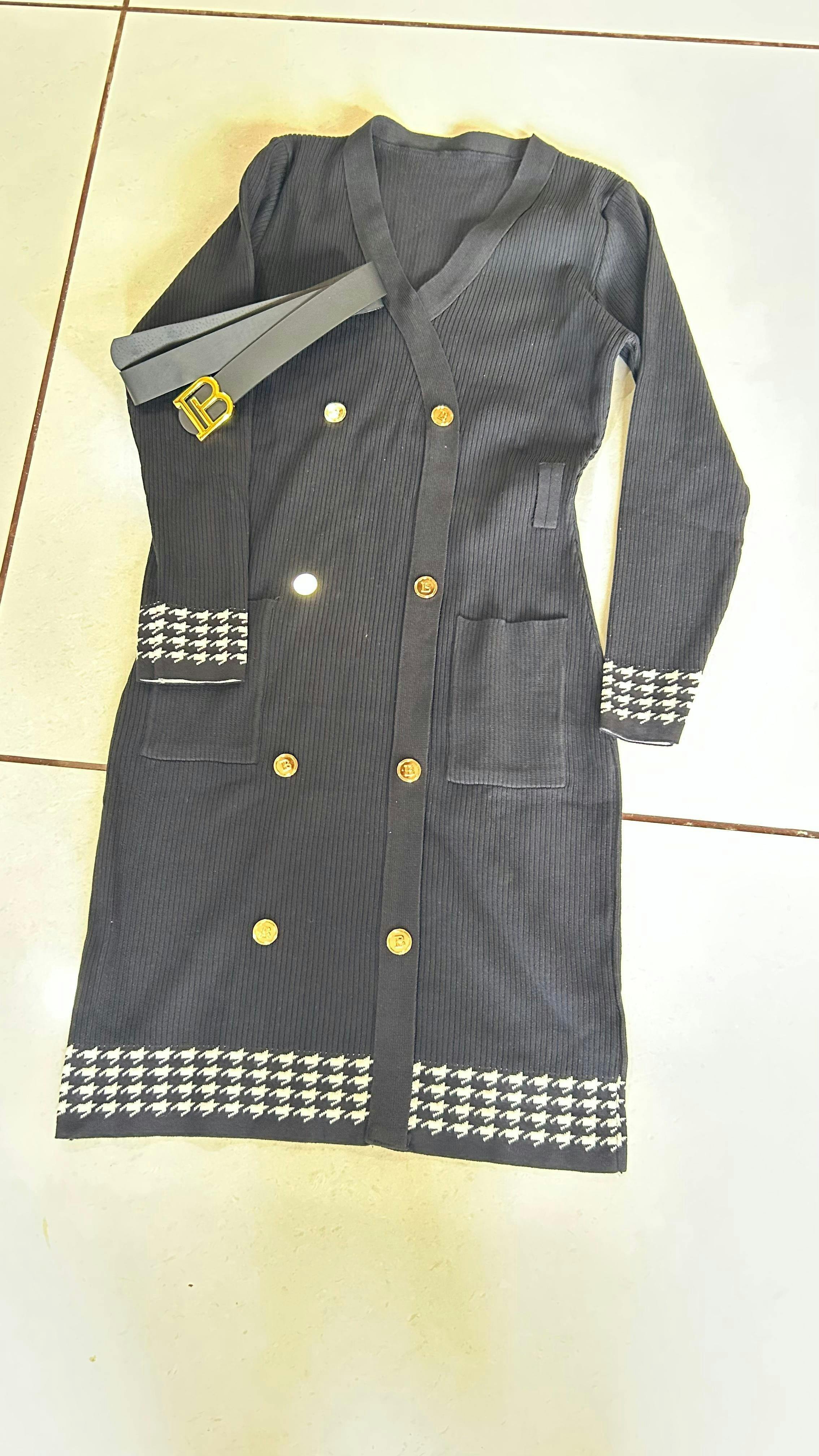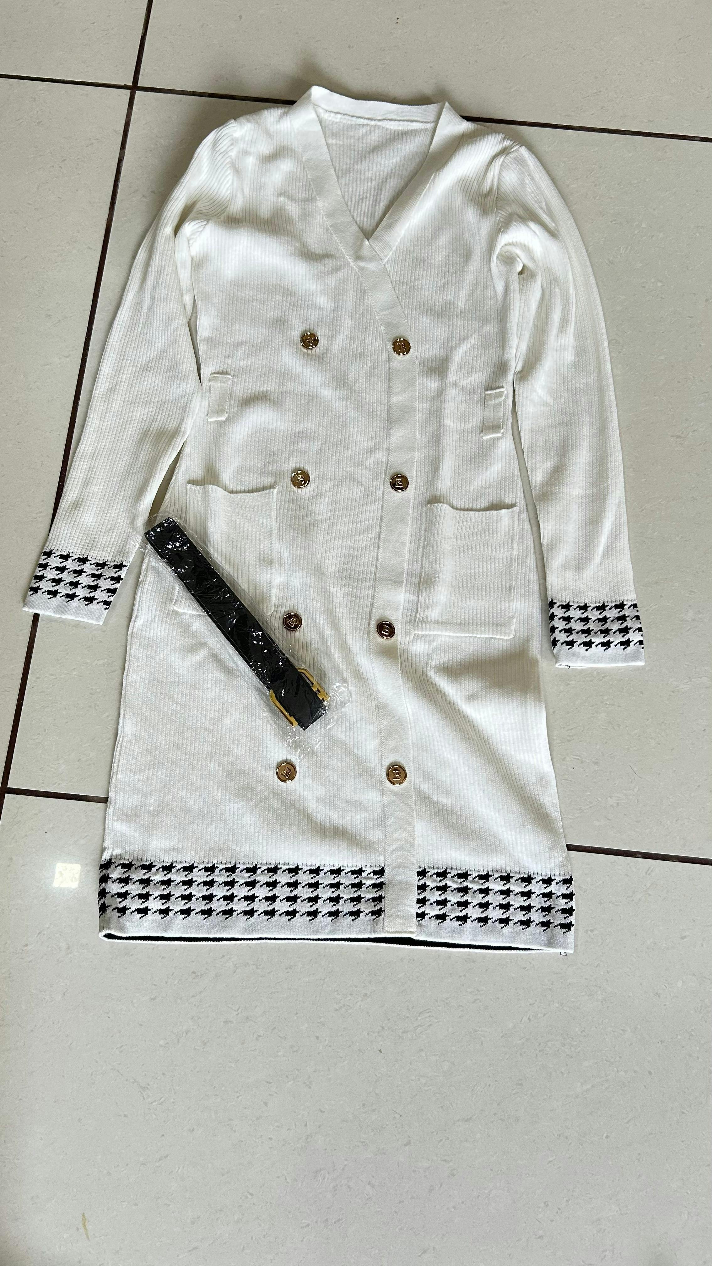 🤍 Knit Bodycon Dress with Button Front & Waist Belt